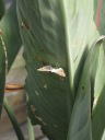 (4)は蓑の内部にいる害虫の様子。この小さな虫が堅いストレリチアの葉も食い破る。成虫が卵を産み付けて、孵化後ミノを背負ってしまうと、薬剤散布を行っても効果は限定的な気がしている。
