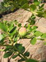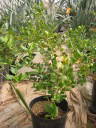 解説:先月から白い花を多く付けていたものの水切れから結実しないでいた。そこで水やり回数を増やしてようやく結実にこぎ着けた。今後しばらくは開花→結実の繰り返し。