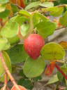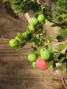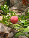 解説:(1)(2)冬の間緑色だった果実はここに来て赤く色付いてきた。花付き、着果が良く一本でも結構収穫出来る。