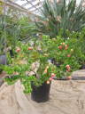 解説:(1)先月植え替えました。30.5cmポットに植わってます。(2)花後緑色の小さな果実が付いています。今後徐々に大きくなる。