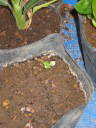 (3)先月発芽してきた苗の様子。双葉が開いたところ。気温が下がってきたので、これ以上の生育は期待できない。