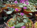 (3)こちらは昨年秋以降鉢上げして、無加温ハウス内で越冬させたものです。ハウス内とは言っても無加温では明け方外気と同じ気温にまで下がるので、真冬は凍結していましたが現在は溶けています。気になることは幾つかは枯れたものがあることです。
