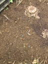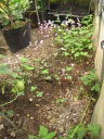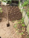 画像手前が以前の定植場所で、奥の色が濃いところが新たに植える場所。これで今までよりいくらか日照条件が良くなります。