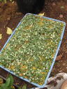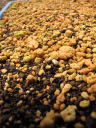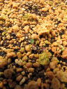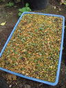 (3)鉢は育苗箱を使用した。種子量が多かったためそうした。(4)用土は鹿沼土と粘質土小粒の等量混合に完熟堆肥を全体の1割程度混合したもの。これはたまたま他の苗を植えた土が残っていたため、使用することにしたもの。地植え栽培で放任であっても自然に発芽することから、土質にはうるさくないと考えている。