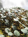 (3)右側は親株で左側は昨年発芽した苗で小さな葉を付けている。とても-10℃以下の低温に遭ったとは思えない。一般的には植物の苗は成株より性質が弱いため、親が育っていても苗が育ってこない事が良くあるが、種子が実って、しかも発芽してきていることから、今後勢力を広げていくことが予想される。