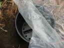 解説:(1)(2)購入した容器は植木鉢なので底に穴が開いています。今回は水を貯めるので穴をふさがなければなりません。当初は市販のシリコンで塞ぐ予定でしたが、忙しかったため、ビニールを使いました。これはビニールハウス用のものです。現在はPOフィルムを使用しています。ビニールハウスと同様で数年に1回取替えが必要になります。