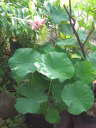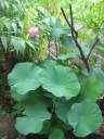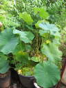 この株は今まで栽培していたもので、春に容器から取り出して1本だけレンコンを植えたものです。土は今まで植わっていたものに、完熟堆肥を適当な量混ぜたと言うより、底にまとめて入れてその上に土を入れて最後にレンコンを植えました。