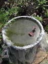 (1)は小型水槽ですが、(2)は果樹用大型プラ鉢で底の排水孔をシリコンで埋めて水漏れを防いでいます。焼き物の睡蓮鉢は値段が高いことと、果樹用プラ鉢は大型で耐久性が良いので好都合。