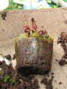 解説:(1)今年も無事越冬し、4月に植え替えたところです。用土は無調整ピートモス100%です。何故ピートモスかと言いますと、「そこにあったから」です。そこにとはサラセニアの植え替え用に買って余っていたということです。