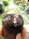 (2)鉢から抜いて見ると予想通り植え込み材料は腐敗が進んでいて、どぶの臭いが鼻を突いた。