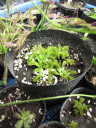 注意深く見てみると、一株モウセンゴケが生えてきました。(写真左上部)どの品種がこのポットへ入ったのか、花が咲くまで分かりません。