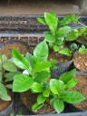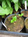 解説:先月からだいぶ育っています。葉の形がはっきりと分かるようになってきた。写真奥は後から播いたもの。果実を一気に収穫し、一気に播いたわけではなく、一つずつ収穫し、取れた種子を播いているのでこの様になった。