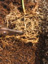 (3)苗からまっすぐに伸びる直根は切って、側根を伸ばすようにする。