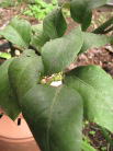 次に日照条件についてもそれほど関係無い。それはこの苗木は日の出から日の入りまで日光を浴びていたわけではないからである。周囲に建物や、大きな木があり、1日の中で日陰になる時間が結構ある。それでも花を付けている。日照条件の良い場所へ置いた苗は大きく育っているが、花は一つも付けていない木を見たことがある。