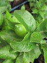 (2)の結果株もだいぶやられました。見つけにくい所に潜んでいたようです。肝心の果実の方は、日が傾いて日照時間が少なくなってきた影響で肥大は止まっています。先月と変わったことは、少し色が薄くなってきています。