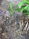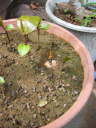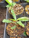 (2)苗は植える前に直根を切り詰め側根を伸ばすようにする。(3)植え深さは種子が隠れる位(今まで埋まってた深さ)にする。鉢は9cmポリポットに用土は鹿沼土に腐葉土と完熟堆肥を2~3割混合したもの。ウォータースペースを少し取る。