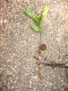解説:(1)写真中央のぎざぎざした感じの葉がマカダミアの苗です。この苗は実は先月画像のものではなく、もう一つ蒔いた種子から出た苗です。