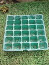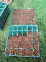 (6)鉢は、苗がまだ小さいのでトレーを使うことにしました。「セルトレー」だとか「プラグトレー」の名でいろいろな大きさのものが市販されています。このトレーは一辺が30~40(mm)位のものです。(7)用土はいつものピートモスです。一晩水に浸けてあります。