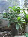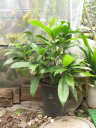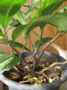 解説:(1)4月になって気温が上昇してきたことから外に出しました。寒さより葉焼けが心配されることから用心深く、最初は明るい日陰に置き、現在はビニールハウスの北側に置いてあります。(ハウス外)
