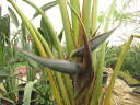 解説:(1)~(2)この株は上の株とは別ですが、同時期に花を咲かせ、その後鞘が膨らんできたものです。この鞘は2段目の仏炎苞のものなので、元の形(1段目の仏炎苞等が)が良く分からなくなっている。