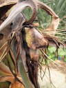 (6)5月の開花後、膨らんできたさく果は10月にはすっかり茶色に変色した。先端部を開かずに枯れたことから、種子は難しいかと思わせたが、ストレリチアとしては少数ながら良さそうな種子を得ることが出来た。(7)