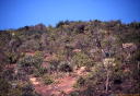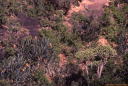 (3)所々地肌や岩が露出している。赤く見えるのはアロエの花。大きなユーホルビアも見える。