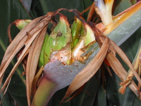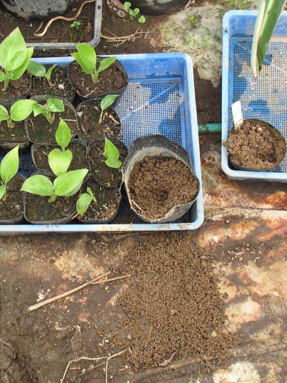 (4)ストレリチアの種子はネズミに狙われやすいが、播種後も注意が欠かせない。写真は播種後4ヶ月になるが、その時点で未発芽でも、発芽能力のある種子はやられることがある。