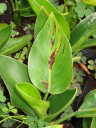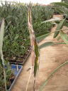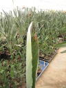 (4)は主脈と葉身の下部半分が黒色変色している。これは被害が大きい方。この後、この葉身は枯れてしまう。