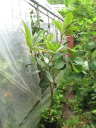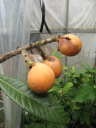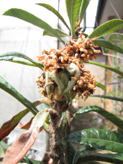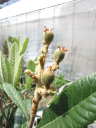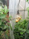解説:(1)(2)冬の間は加温ハウス内で越冬させていましたが、暖房機のトラブルで予想外の低温に遭わせてしまって心配しましたが、凍害については問題ありません。それより開花中の花は結実せずに終わってしまいました。