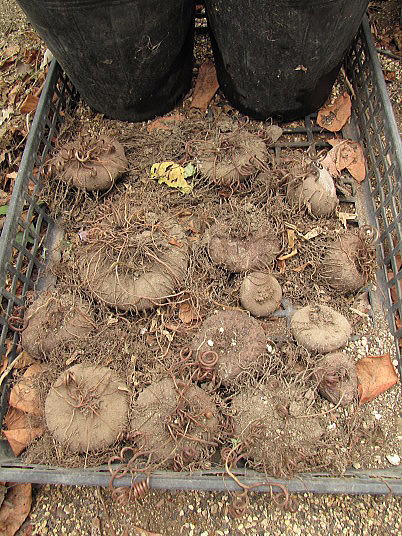それともう少し日照条件の良い場所で育ってもらいたいという考えからです。一番大きな球根は直径が10cm程度でそれほど大きくはありませんが、年数は十数年経っています。条件が良ければもっと大きな球根の育っているものなので、決断した次第です。