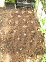 (2)定植間隔は15~20cm取ったつもり。(3)~(7)植え方は移植ごてで穴を掘って、上下を確認し球根が完全に隠れる様に覆土し最後に土を均して終了。全部で15球程植えた。しばらくは動きは無い。暑さの盛りが過ぎて過ごしやすくなってきた頃、動き出す。