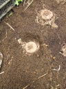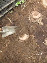 画像手前が以前の定植場所で、奥の色が濃いところが新たに植える場所。これで今までよりいくらか日照条件が良くなります。