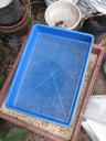 (3)鉢は育苗箱を使用した。種子量が多かったためそうした。(4)用土は鹿沼土と粘質土小粒の等量混合に完熟堆肥を全体の1割程度混合したもの。これはたまたま他の苗を植えた土が残っていたため、使用することにしたもの。地植え栽培で放任であっても自然に発芽することから、土質にはうるさくないと考えている。