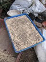 (5)種子はなるべく重ならないように撒いたつもり。本当はもう少し間隔を取って播きたい。(6)覆土は種子が完全に隠れる様にする。それで育苗箱の高さの9割まで用土が入った。