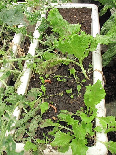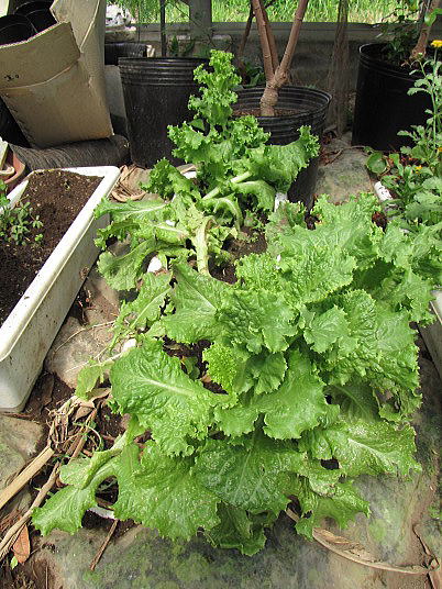 解説:(1)リーフレタスは種播きが遅かったこともあり、薹が立ち始めた。それでもサラダにはならなくても、料理の付け合わせくらいにはなりそうだ。