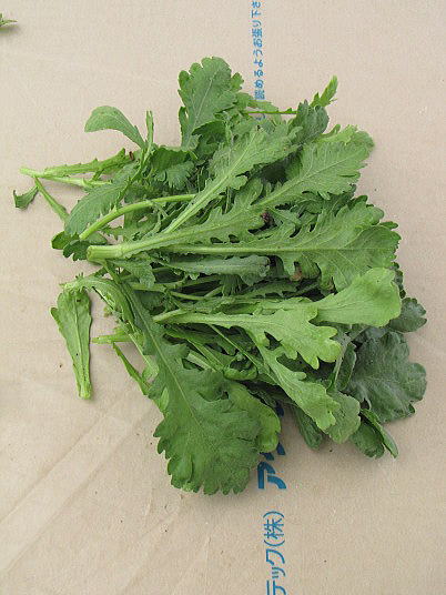 (4)(5)春菊も初めて収穫した。大きいものから茎を途中で折り取るように行った。特に気に止めていなかったが結構育っていて驚いた。ほうれん草もそうだが、これほど良く育つなら、もう少しまじめに管理していれば良かった思っています。春菊も無農薬です。