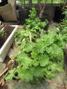 (3)(4)春菊は一部花が咲いていますが、本当は摘み取らなければならない。こちらは夏場の栽培でもほとんど病害虫の心配が無いため、無農薬で栽培できる家庭菜園向けの野菜です。