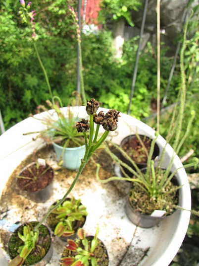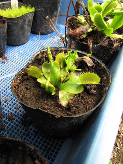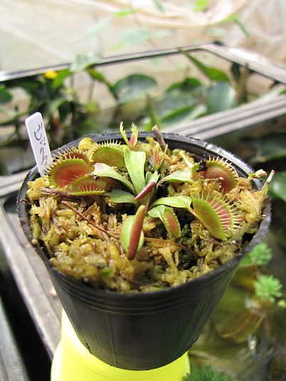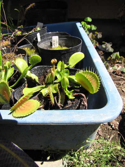 現在の管理は、無加温ハウス内日向に置いていて、数日に1回水を与えています。捕虫の方はたまに蚊を捕らえるくらいです。当地方の虫はハエトリグサとは初対面のはずですが、さすがに危険を冒さないと言うか、興味が無いのか、面白いことは起こりません。それでも調子が良いことは、感心させられます。