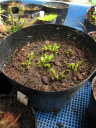 解説:(1)今年も無事越冬し、4月に植え替えたところです。用土は無調整ピートモス100%です。何故ピートモスかと言いますと、「そこにあったから」です。そこにとはサラセニアの植え替え用に買って余っていたということです。