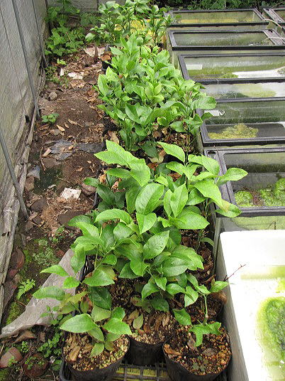 解説:2008年に挿し木で増やした苗の3年目。冬の間に古い葉が落葉している。