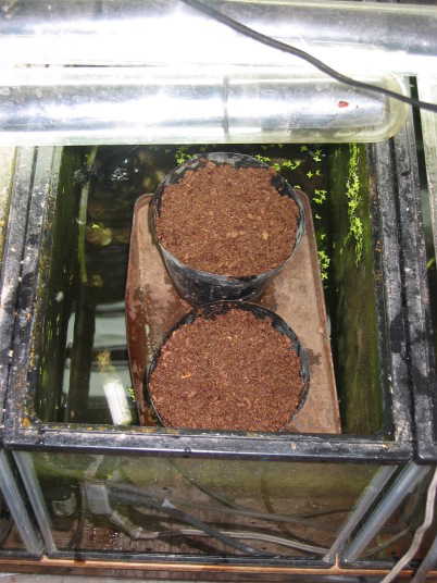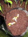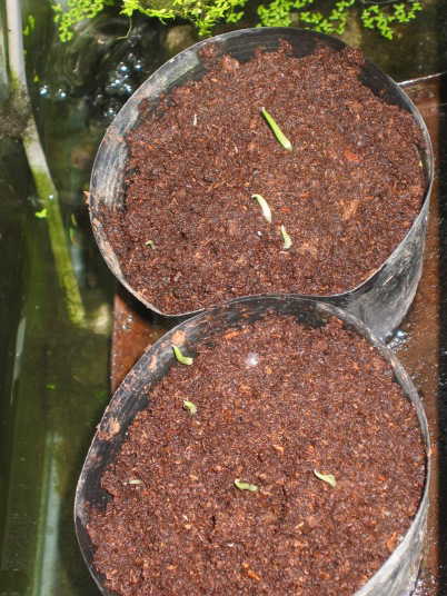 今後はピートモスが乾かないように水を与える。常に湿っていて問題ない。種子に問題なければ発芽は早い。また、水槽の水も減ったら補充する。