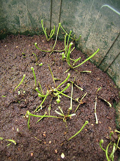 出ている芽は全てサラセニアの実生苗です。これだけの発芽であれば特別なことは必要無いと言えるでしょう。このことからサラセニアの実生で最も重要なことは種子の品質であることが良く分かります。