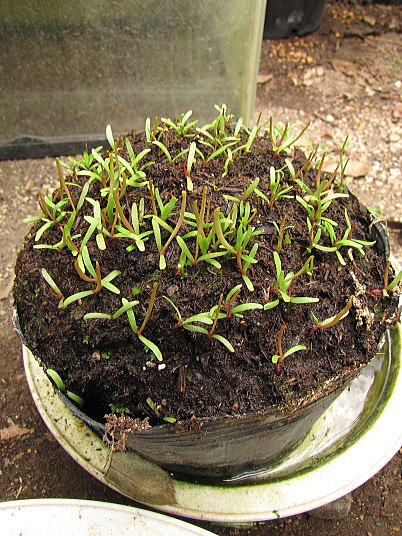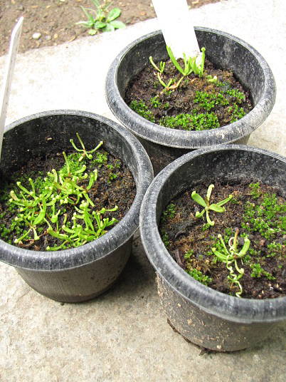 解説:この苗はプルプレアの自家採取種子を初夏に播いた結果です。各苗共に本葉が数枚展開しています。