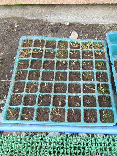 この後風当たりと日差しの弱い場所へ置いて水をかけて用土を落ち着かせた。寒さが来る前に少しでも育ってくれれば良いのですが・・・。