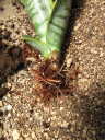 (2)(3)スパーバを抜いて見ると、おがくずの様な土の植わっていました。(4)(5)のシルバーハニーの方は、水持ち重視のぐちゃぐちゃした様な土に植わっていて、何れも良くないと判断し、全ての土を落として植え替えることにしました。