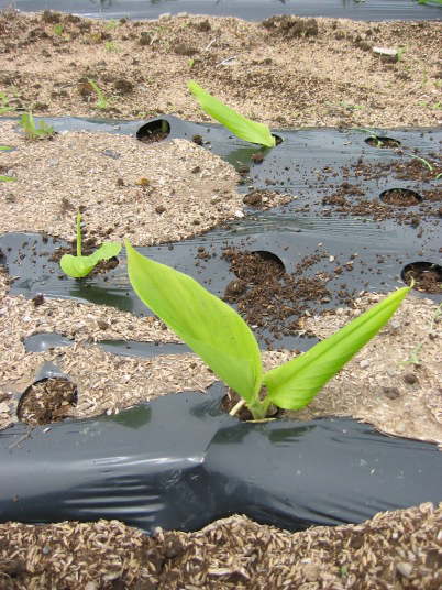 写真は2007年春、路地に植えたウコンの2008年7月1日の様子です。つまり路地で越冬しました。熱帯系植物と思われていたウコンですが、冬期間-8℃以下の冷え込みが数十日もある当地方でも一工夫することで路地で越冬することが確認されました。