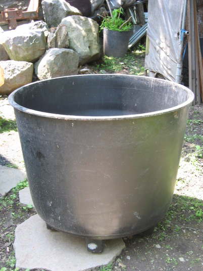 本来は果樹を栽培するためのもの。しかし、一般的なプラ鉢と比べて耐候性、強度、柔軟性に優れ長期間使用出来る。開花株の大株や、水はけの悪い場所でどうしても地植え出来ない場合この様な大鉢植えと言った手段がある。