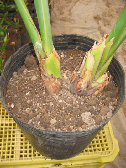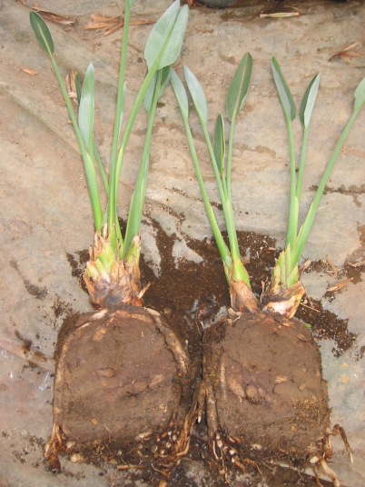 ストレリチアの株分けは、基本的に今回の様に最低4条立ち以上にならなければ行わない。その理由は一株当たり最低2条以上にしたいからである。条数が少ないと、その後の生育が緩慢になったり、開花するまで時間が掛かることがあるからである。