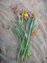 実際に切り落とした花茎と古い葉です。恐らく株に残した葉の方が数は少ない。まだ完全に終わっていない花があれば切り花にすれば良い。