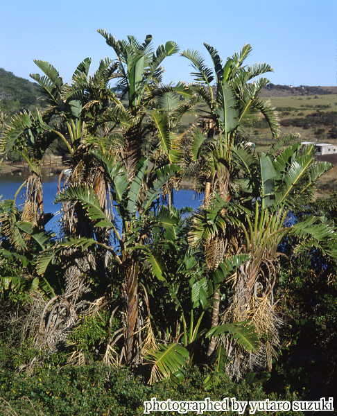 (1)は自生地で高く成長し株立ちになったもの。(2)も自生地で成長過程の中株。共に風の影響で葉は櫛状態になっている。